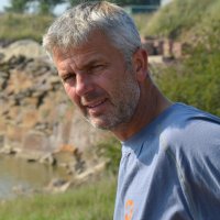 Allan og Rie er indehavere. Allan står for den daglige drift i stenbruddet - herunder knusning af de smukke sandstens skærver.